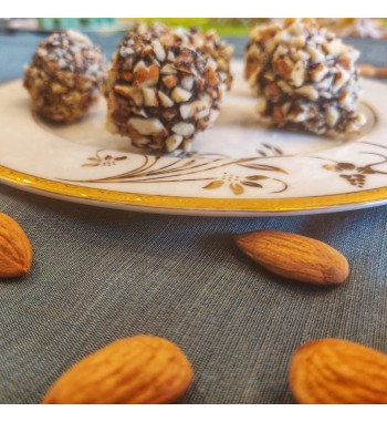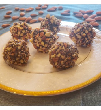 Rich and creamy homemade chocolate truffles coated with almonds no added sugar!